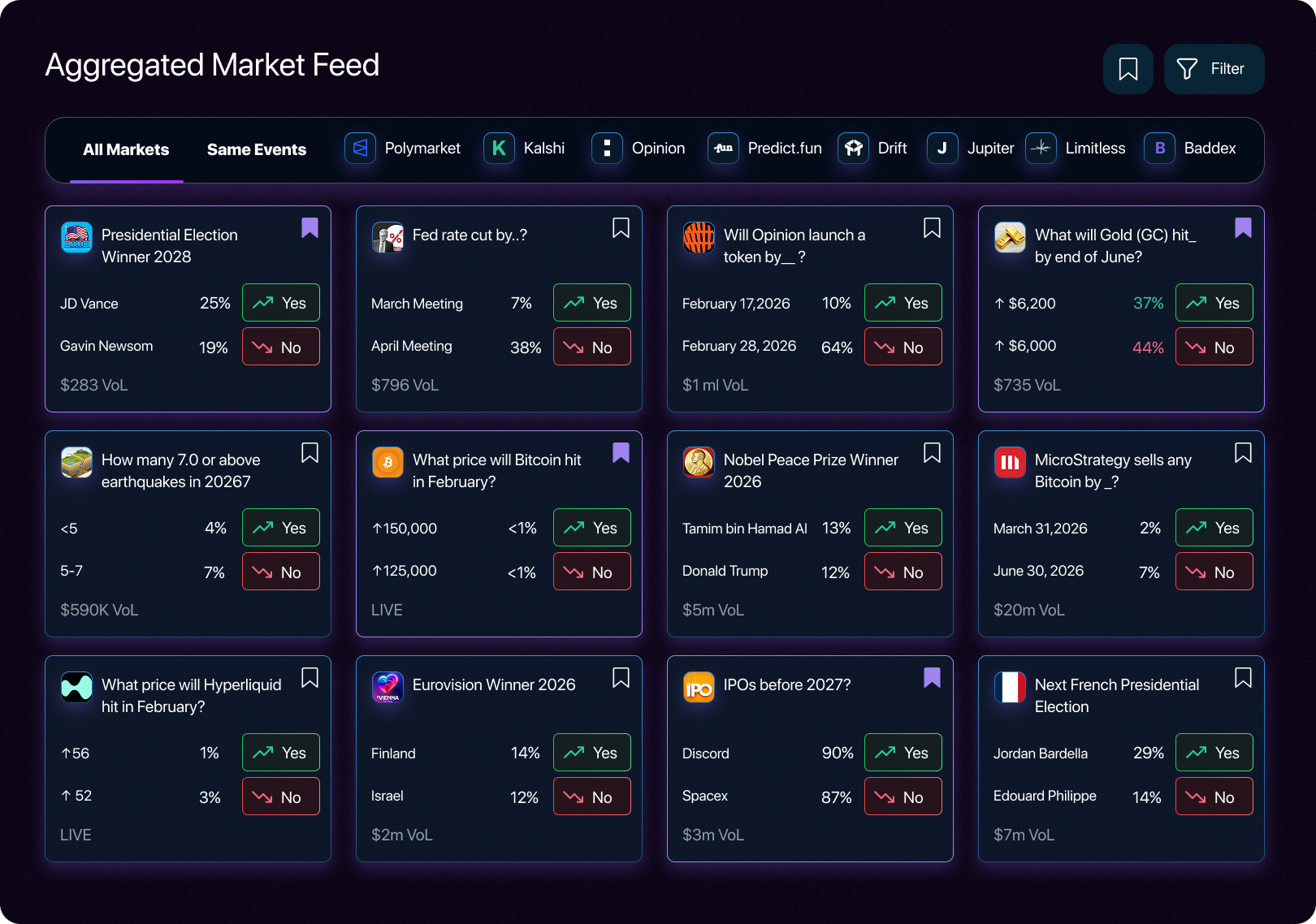 Trade on Polymarket, Kalshi, Opinion, Predict.fun & more